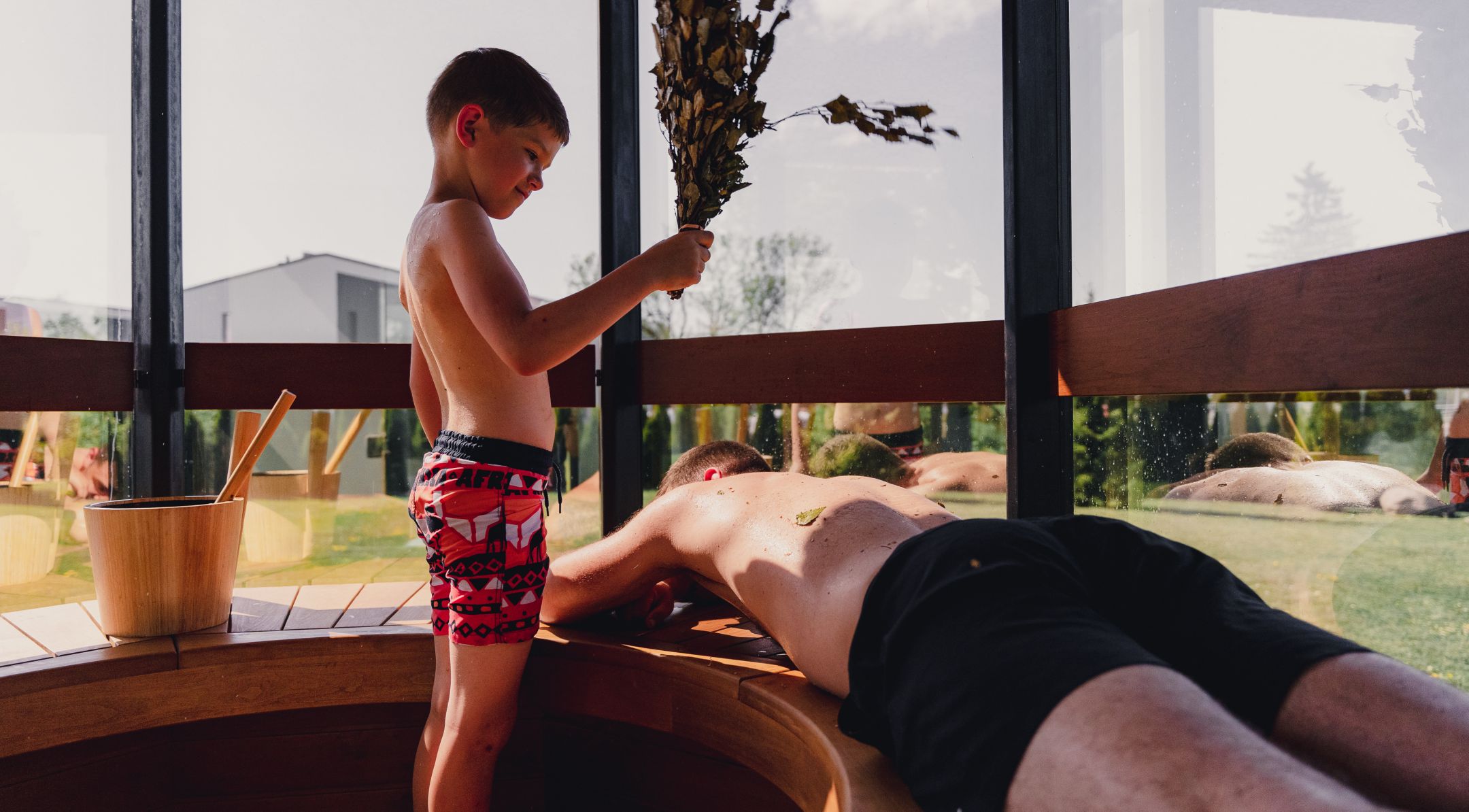 Sauna with a changing room. For up to 7, doubling space and enhancing shared experiences.