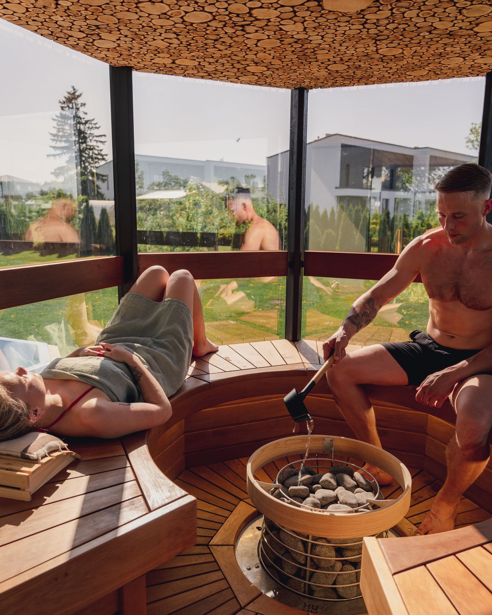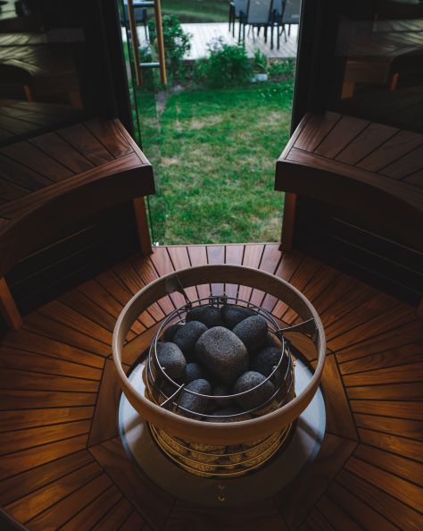 A sauna is a ritual. Our circular layouts and center-mounted stoves bring people — and energy — together.