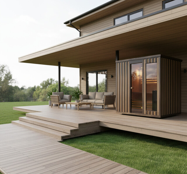 Sauna with a changing room. For up to 7, doubling space and enhancing shared experiences.