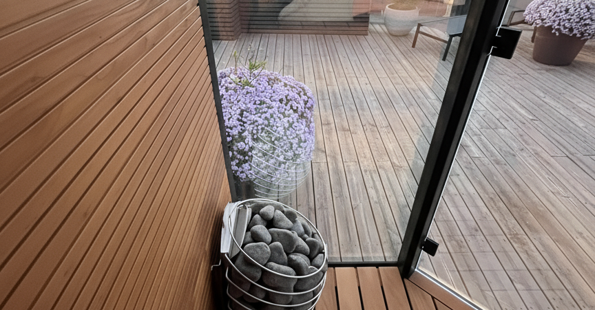 Haljas saunas are designed to be used even within extremely cold climates. Our sauna’s performance has been tested at temperatures as low as -25 °C (-13 °F). Our commitment to ensuring robust thermal insulation is reflected in our employment of double-glazed glass panels that are 30 mm thick. The door is the only single-layer, 8mm thick glass. Each of these glass panels undergoes a tempering process, significantly enhancing their resilience against breakage.
