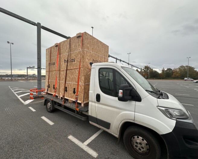 From this point, you as the client take responsibility for unloading and moving the sauna to its prepared site — whether that involves a crane, telehandler, or other equipment.
