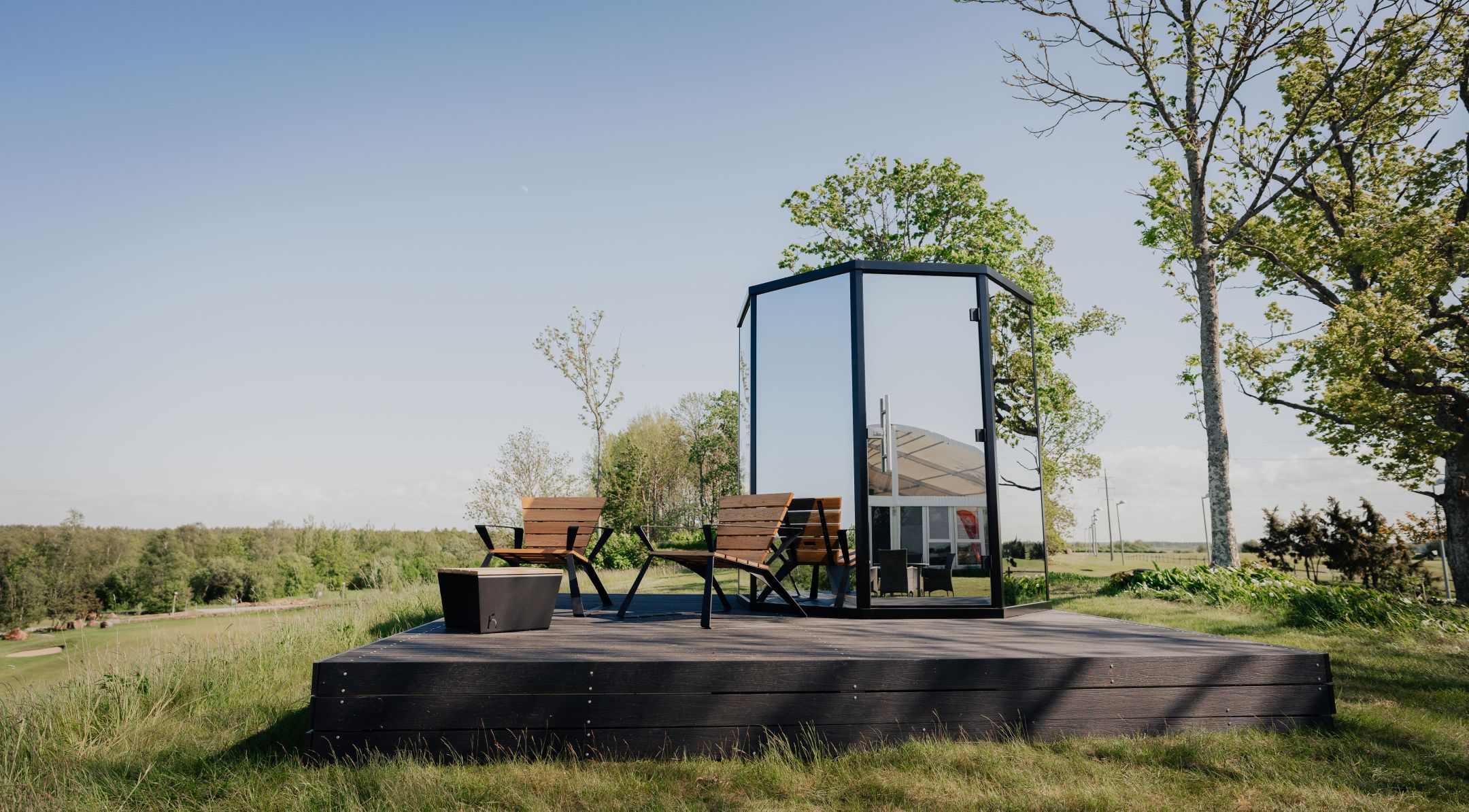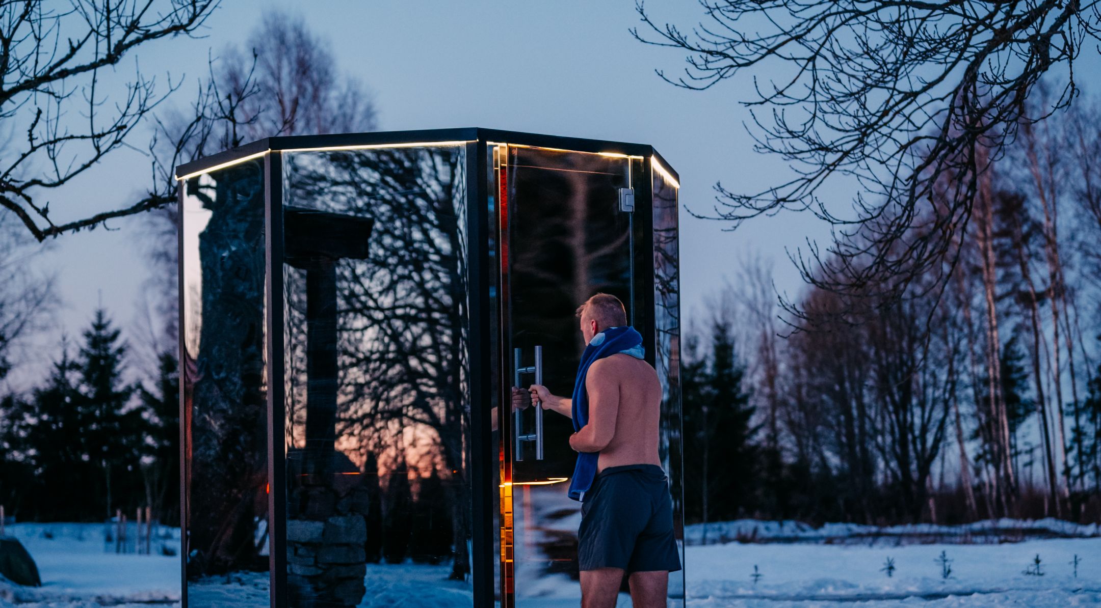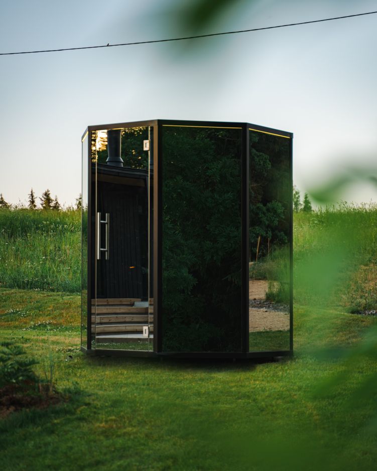 Mirrored glass ensures you see out, but no one sees in, blending your sauna into any landscape. -