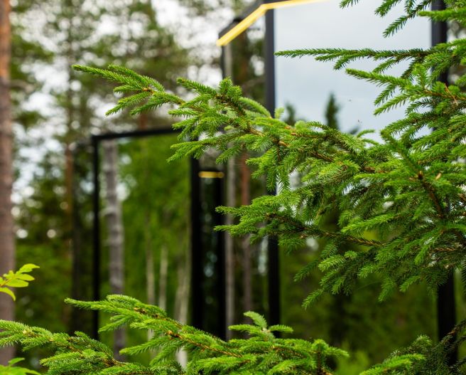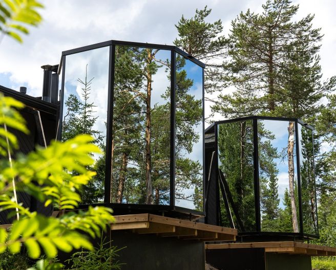 Mirrored glass ensures you see out, but no one sees in, blending your sauna into any landscape. -
