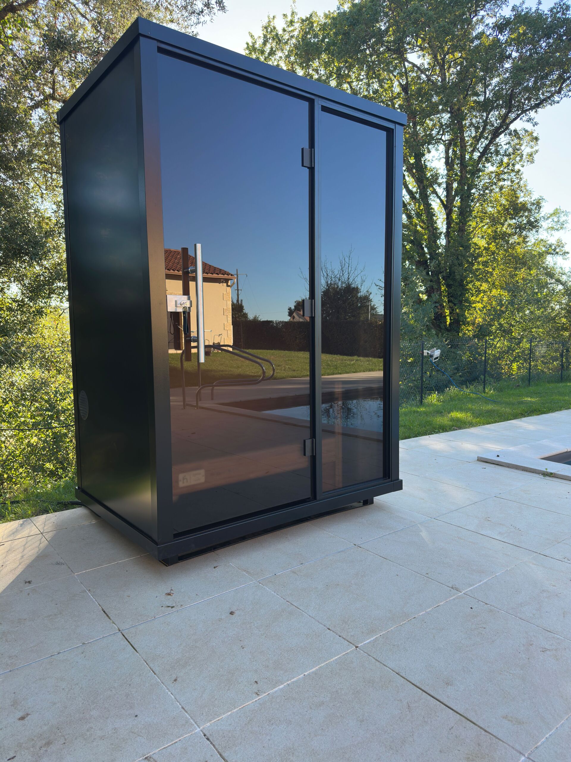 Haljas delivered and installed this custom Nano to a private client in Saint-Julien de Lampon, tiny town in Southern France. Client replaced the mirror glass facade with a matt bronze finish.